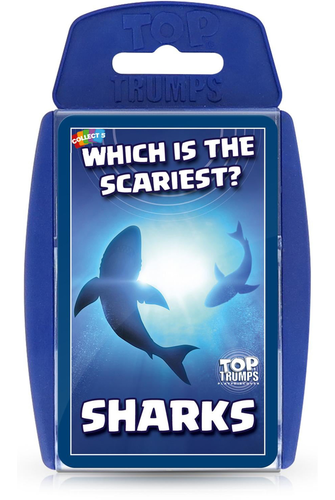 Propel yourself into the seriously surprising world of Sharks Top Trumps! Become closely acquainted with the bull shark, with its 300kg of muscle, it is the shark that has the most registered attacks! Find out more about the infamous great white shark, who can have 3000 sharp teeth at any one time, or the hammerhead shark, whose head is covered in tiny special sensors that help them detect electric fields in the water! This pack includes 30 of your favourite fearsome sharks and is bursting with facts about these fascinating creatures.