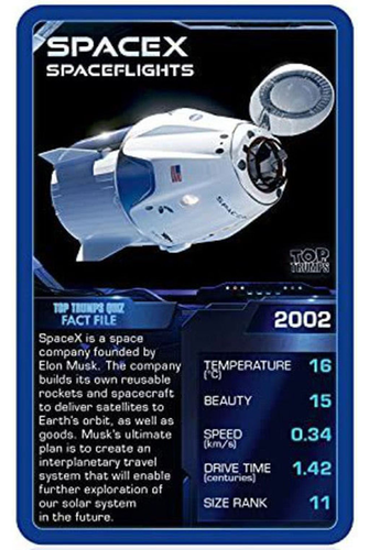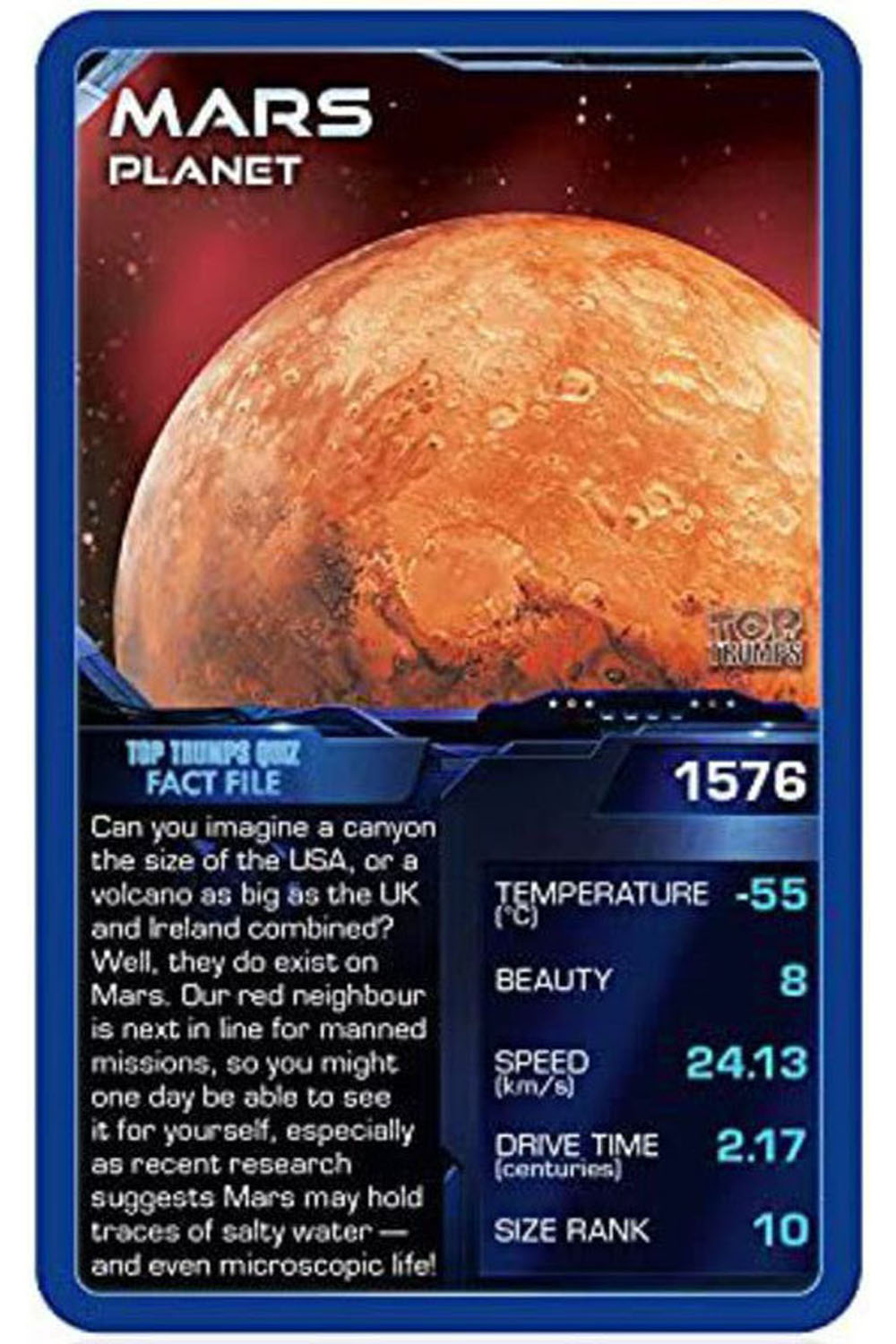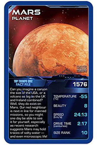 Take off on a voyage through the mysteries of the cosmos with this eye opening edition of Top Trumps: Space Exploration. Discover 30 of the most amazing natural and man made space phenomena the universe has to offer as you battle it out for the title of Top Trump. With cards about the Apollo 11 Mission, Halleys Comet and the Lunar Rover, you will learn about the wonders of the Solar System and beyond. Choose from categories including Temperature, Beauty, Speed and Size as you battle it out with planets, spacecraft and more.