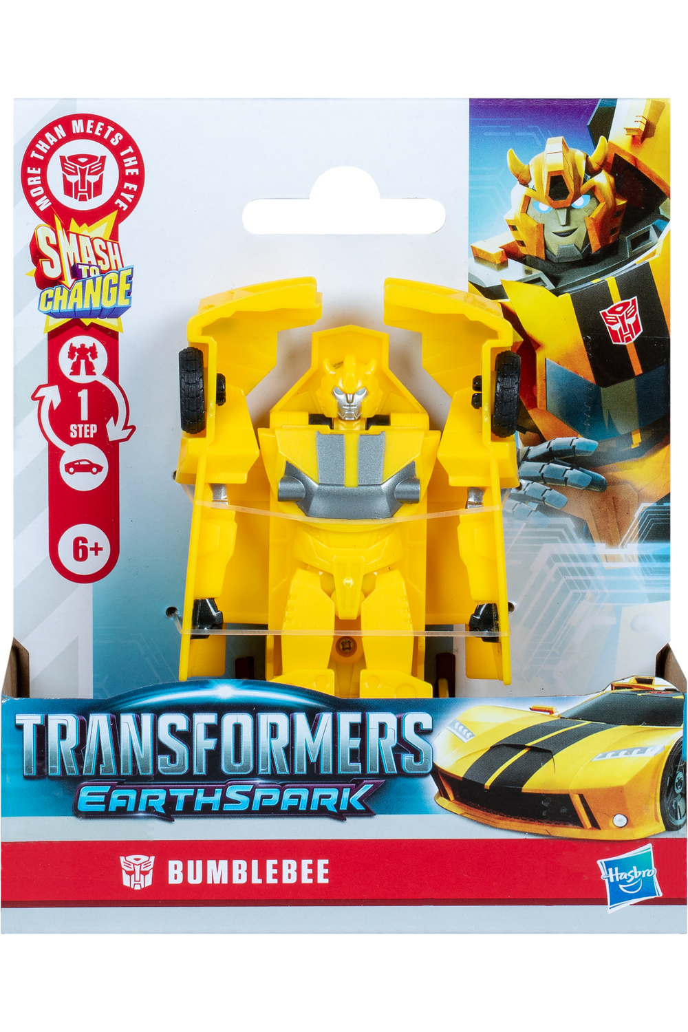 Smash into action with the Transformers: EarthSpark 1-Step Smash Changer action figures! Convert these Transformers action figures from car mode into robot mode by smashing them on a flat surface! The car toy pops up into a robot toy! With a 1-step manual conversion, kids can change it from robot back to car - then smash again for super satisfying, fidgety play! Look for more 1-Step Smash Changers Transformers figures (each sold separately, subject to availability) featuring popular characters from the Transformers: EarthSpark show.