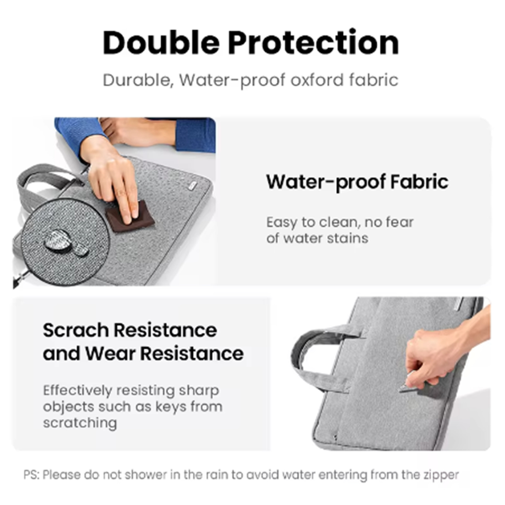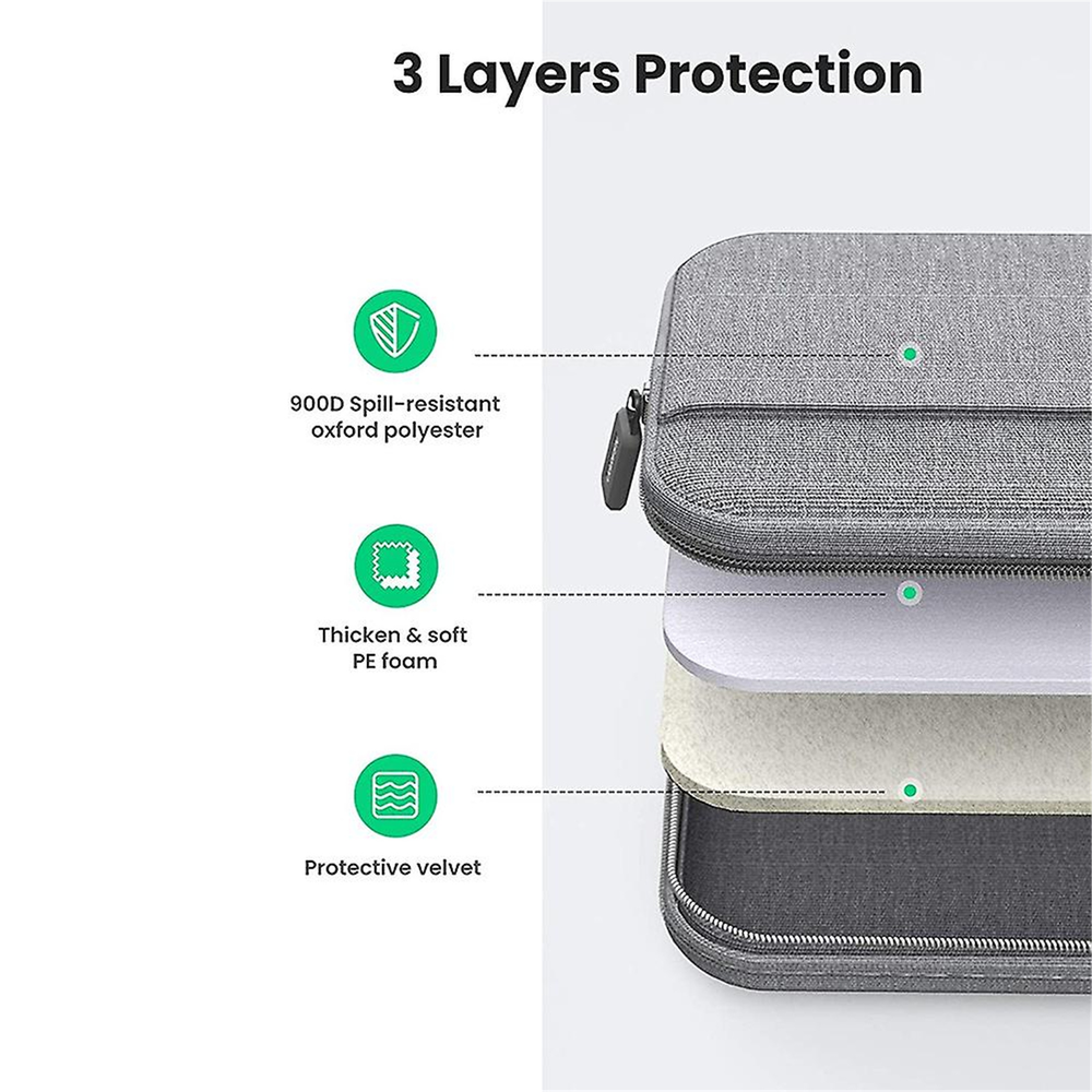 The UGREEN shockproof, water resistant laptop sleeve for 15-15.9" laptops is made with a solid three-layer construction as well as scratch-resistant soft velvet lining material.