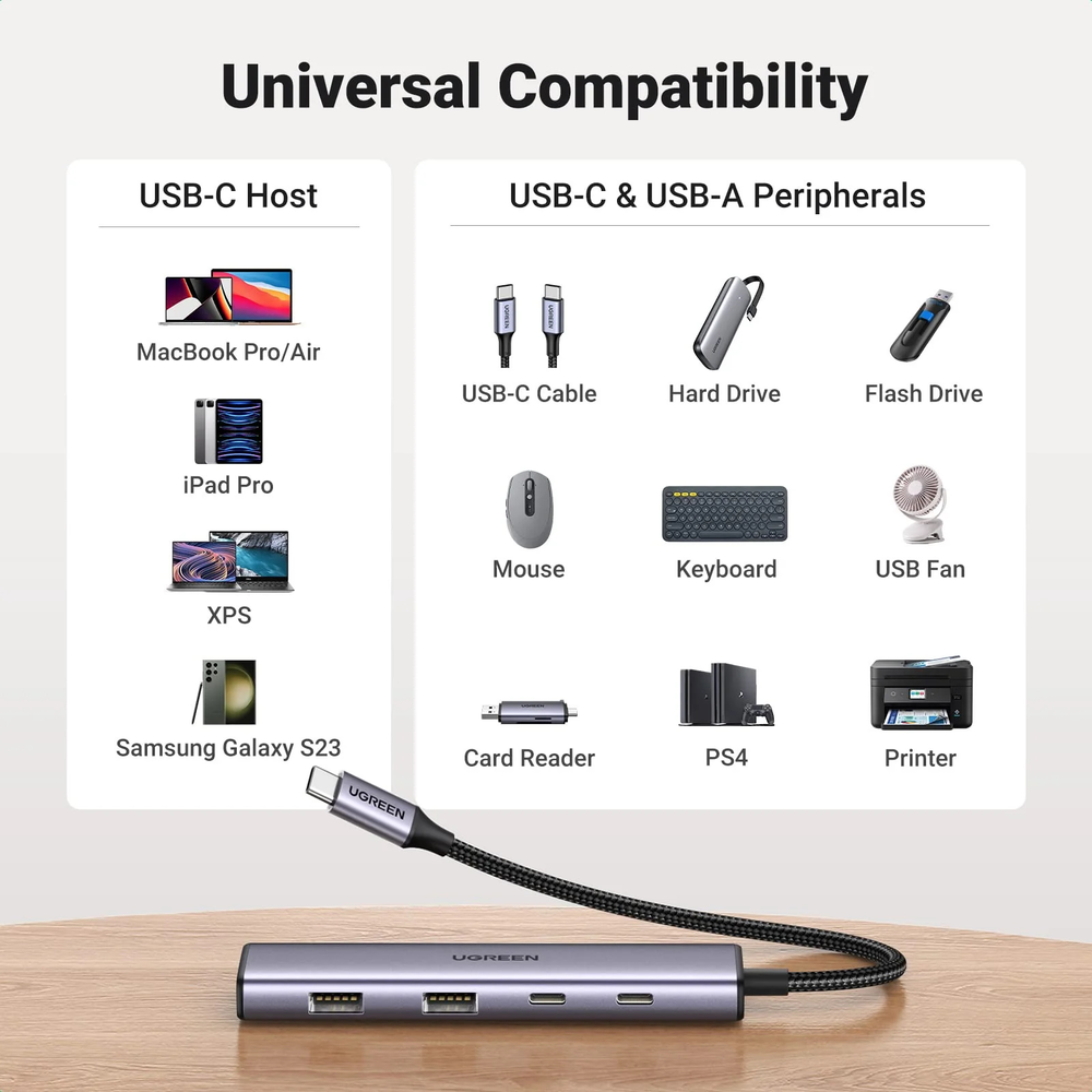 The UGREEN USB-C 4 Ports Hub easily allows you to use multiple USB 3.0 devides simultaneously with simple plug and play technology. For most USB-C laptops, tablets, and smartphones with USB 3.0\USB 2.0\USB 1.1. Hub is not suggested to power up cell phone.
