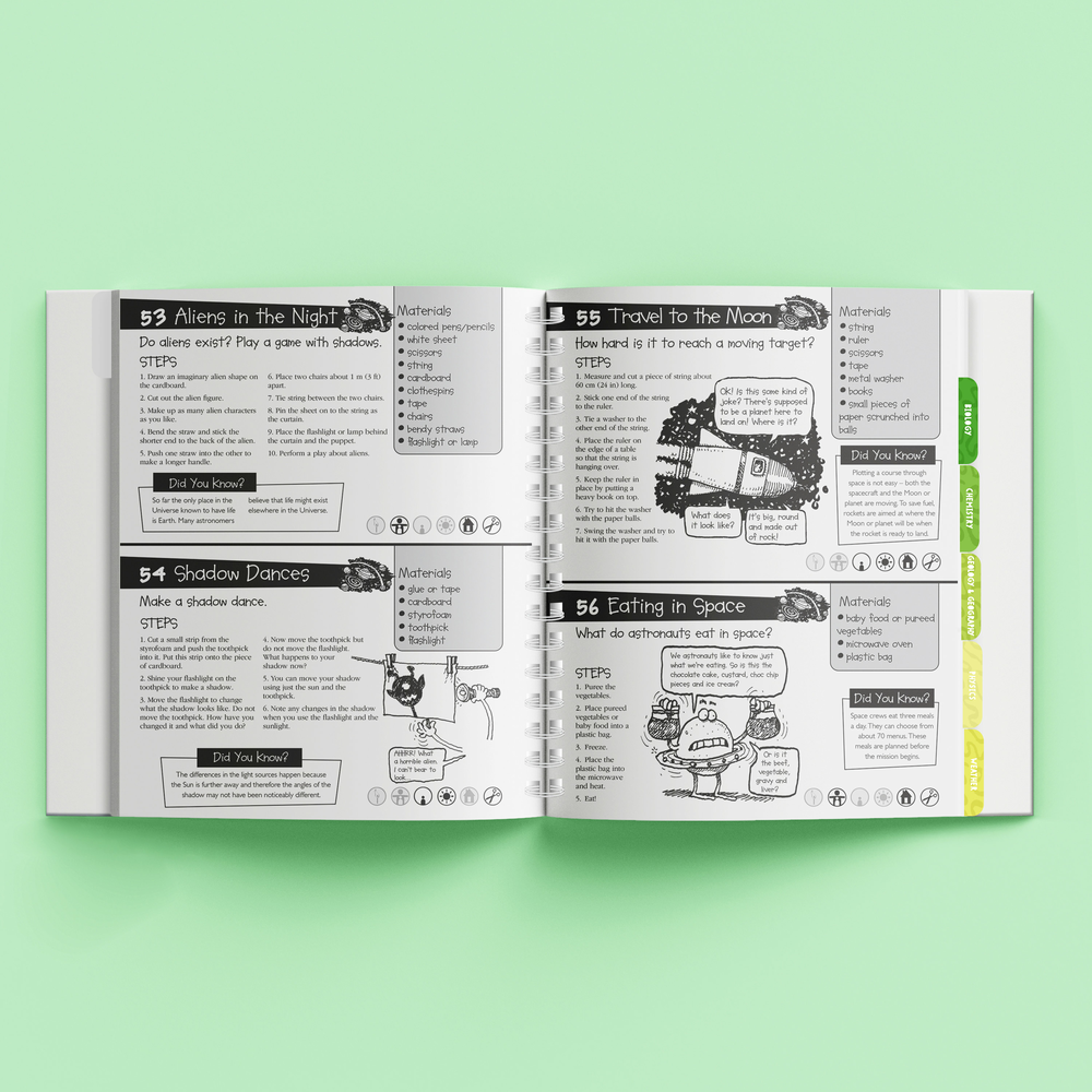 Explore the amazing world of science! With Science Experiments: Discover Anything!, readers will discover the secrets of science with 365 fun, fascinating experiments to challenge and entertain! Learning has never been this entertaining, engaging and downright fun!