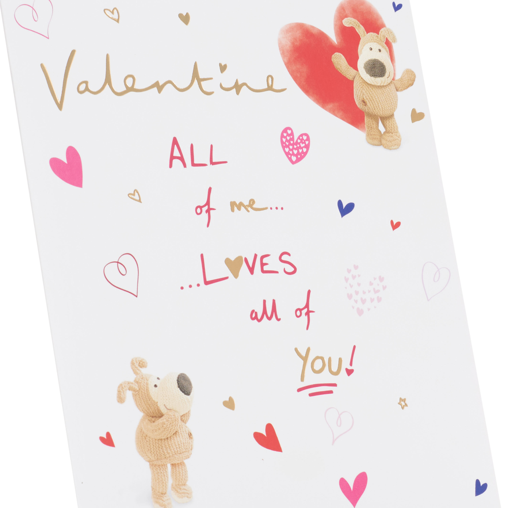 Tell them you love all of them with this cute Boofle Valentine's Day card, featuring adorable dogs and gold foil lettering, all printed on premium quality board. Message reads: Valentine. All of me… loves all of you! Happy Valentine's Day! With lots of love