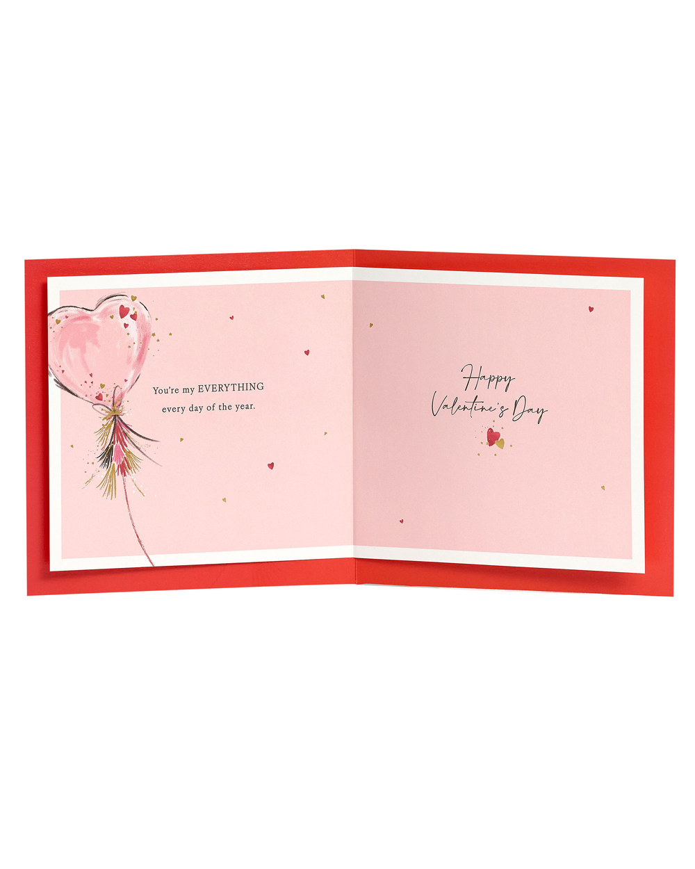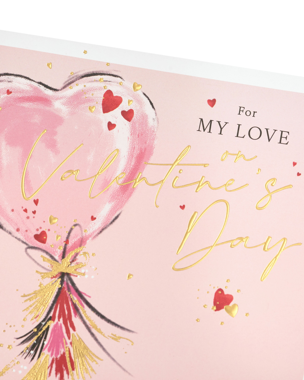 Tell them they mean everything to you with this romantic Valentine's Day card, featuring a heart balloon design printed on premium quality board, finished with gold foil. Message reads: For My Love on Valentine's Day. You're my everything every day of the year. Happy Valentine's Day