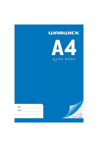 The Warwick 1J8 Quad exercise book features a soft cover, 36 leaves (72 pages) with a 5mm quad ruling. Perfect for use as a mathematics or statistics book for older students.- Dimensions: 210x297mm