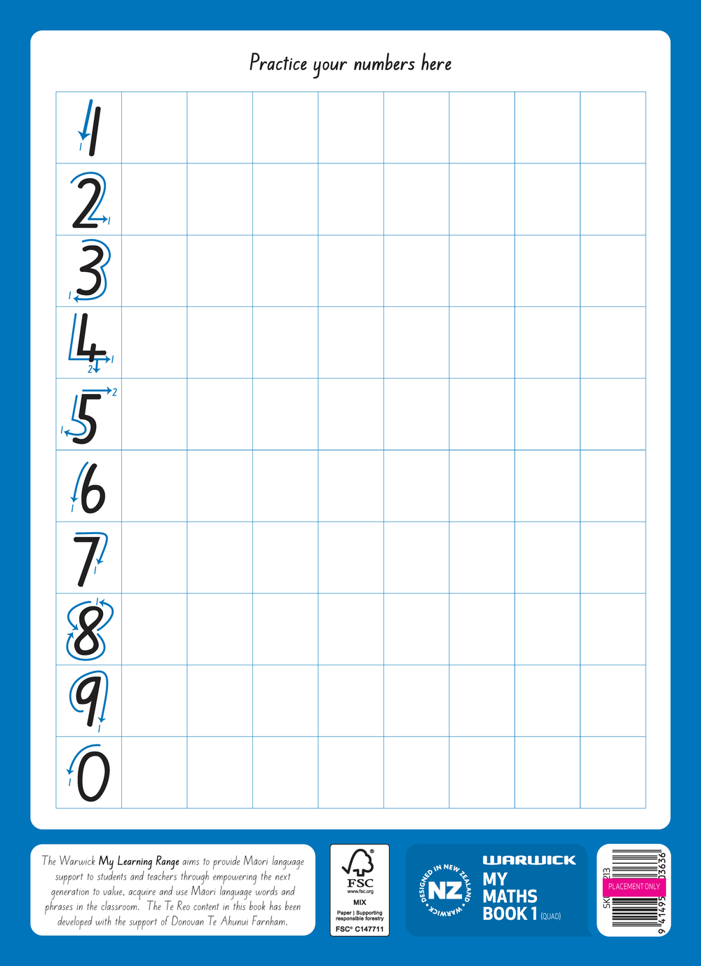 The Warwick My Maths Book 2 features a soft cover, 32 leaves (64 pages) with a 10mm quad ruling. Ideal for easy to write and solving maths problems. Book includes reference material such as addition up to 10, doubles up to 20, basic fractions, 100's chart, basic 2D shapes and a write on wipe off digital/analogue clock face is included. Great for back to school or as a back up during the school year.