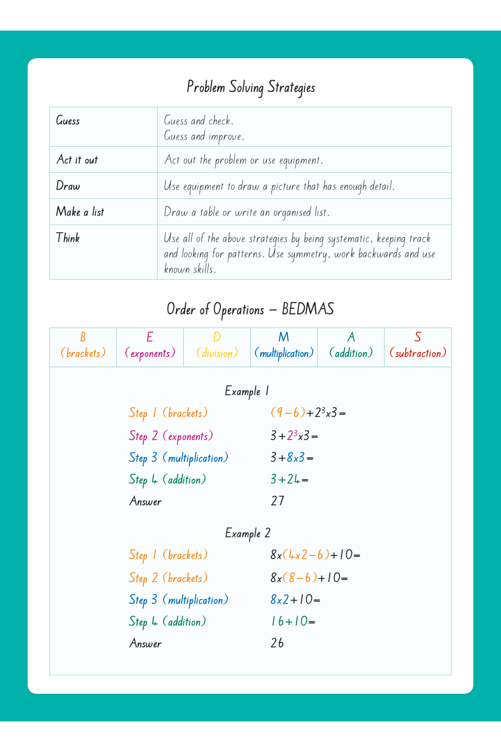 The Warwick My Maths Book 2 features a soft cover, 32 leaves (64 pages) and blank pages with no ruled lines. Ideal for easy to write and solving maths problems. Book includes reference material such as problem-solving strategies, order of operations - BEDMAS, equivalence chart-numbers, word, decimal, and percentage, as well as value houses chart, units of measurement and types of angles are included. Great for back to school or as a back up during the school year.