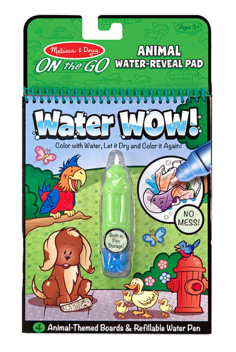 Colour with water, let it dry, and colour again! Look for and colour in awesome animals with these reusable Water Wow! animal-themed boards and refillable water pen! With built in pen storage and no mess activity boards, this activity pad is perfect for taking on the go!