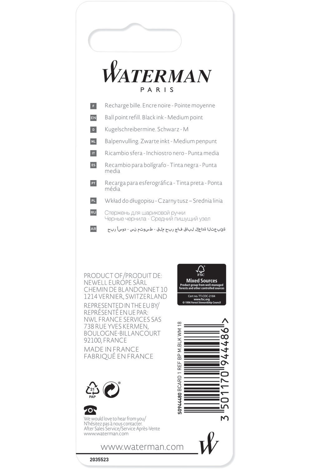 Waterman Ballpoint Pen Refill Medium Black