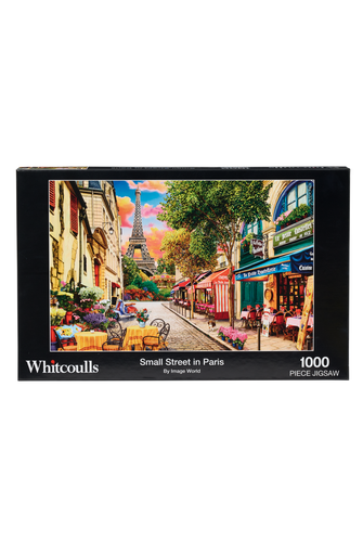 Piece together a wonderful image of a small Parisian street with vibrant florals and the Eiffel tower in the distance, featuring artwork by Image World in this Whitcoulls 1000 piece jigsaw puzzle. Finished puzzle measures: 68.8cm x 49.3cm.