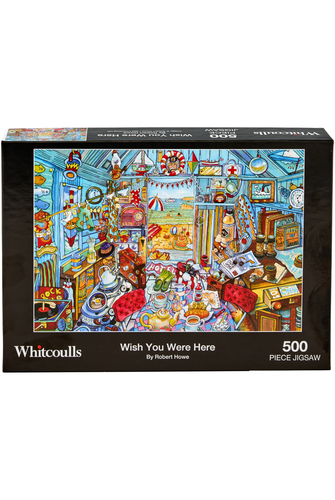 Piece together a wonderful image of an extremely cluttered beach-side house full to the brim with vibrant knickknacks and curiosities, featuring artwork by Robert Howe in this Whitcoulls 500 piece jigsaw puzzle. Finished puzzle measures: 49.8cm x 34.3cm.