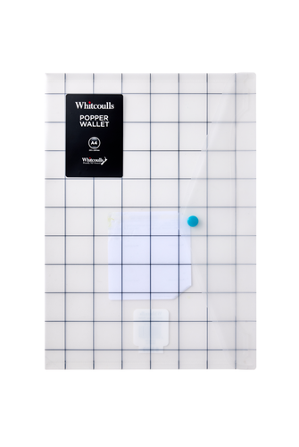 The Whitcoulls Popper Wallet is perfect for making your filing systems more efficient through colour coding. Perfect for storing project documents, travel notes, recipes and more. This clear A4 popper wallet has a grid design and a coloured button stud closure that comes in either teal or grey. Please note this is an assorted item, you will receive a randomly selected design/colour for online orders.- Size: A4