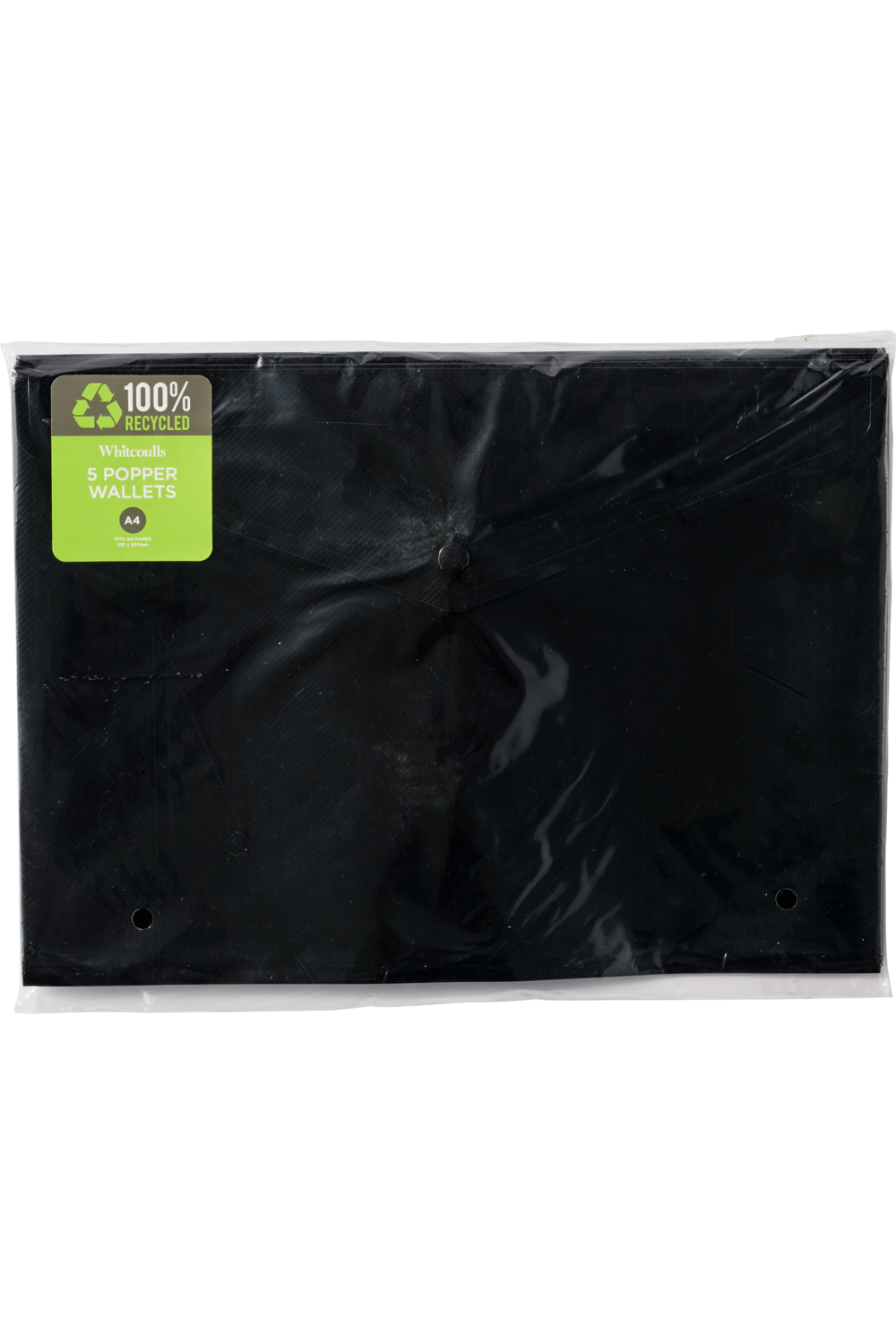 Whitcoulls A4 Recycled Popper Document Wallet Black Pack of 5