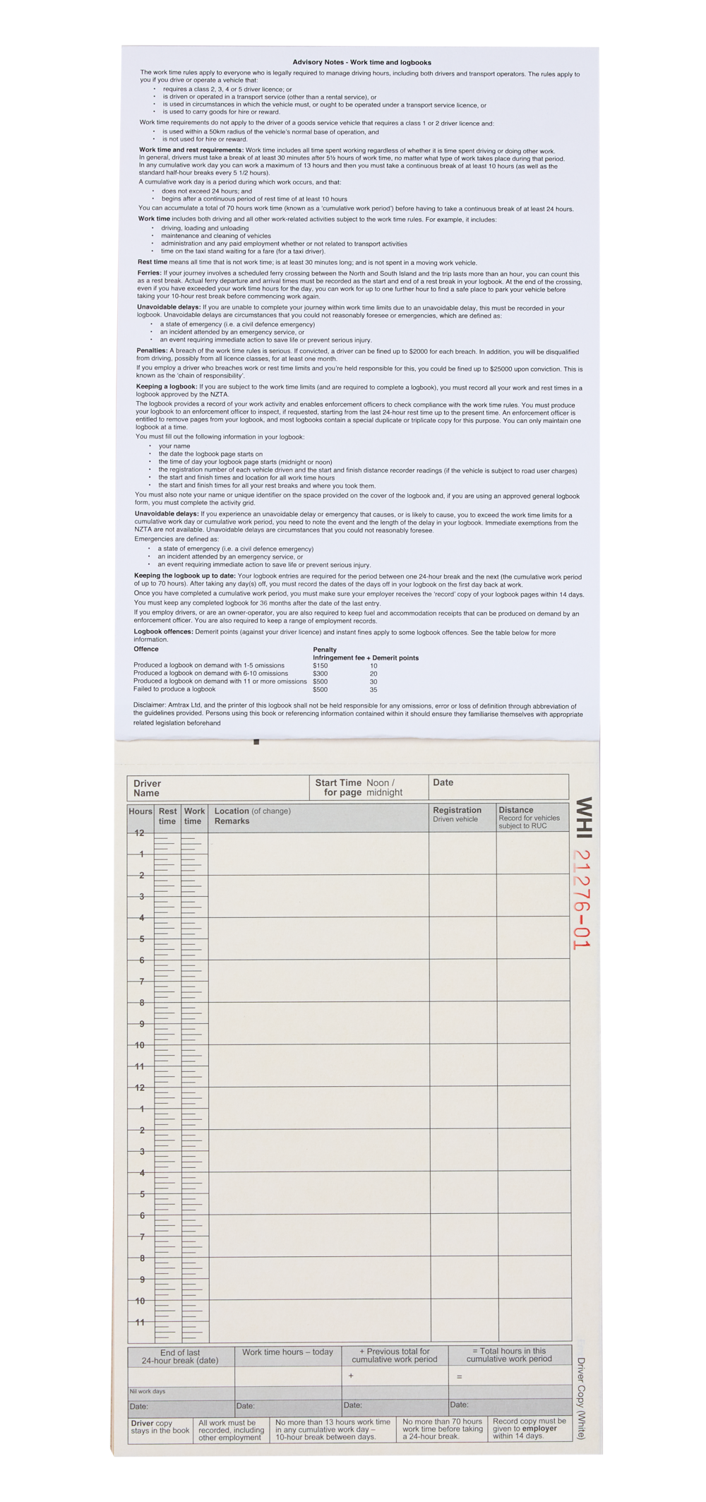 Whitcoulls Driving Hours Log Book