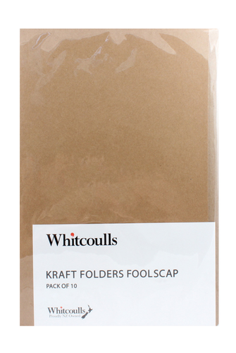 Whitcoulls Foolscap Folders Kraft, Pack of 10