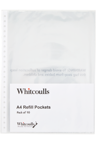 Whitcoulls branded L-shaped pockets in assorted colours. Great for organising documents and files. Available in pack of 6.- Size: A4
