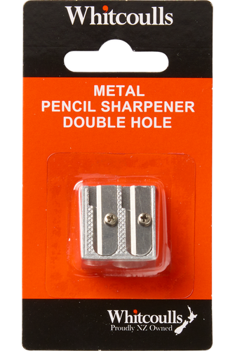 Make sure your pencils are always ready to go with this metal pencil sharpener from Whitcoulls. Features one large and one small hole to sharpen all of your pencils.- Double hole sharpener
