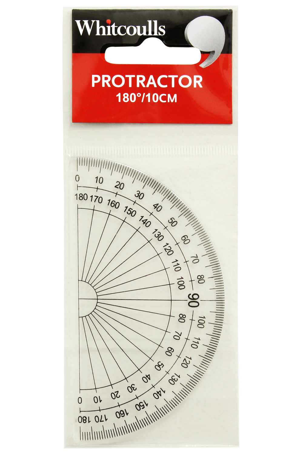 The Whitcoulls branded 180 Degree Protractor with 10cm base is the perfect tool for measuring or constructing an angle or circle.