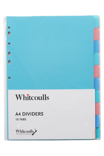 Organise your folder with these Whitcoulls A4 subject dividers made with recycled materials. Including 10 tab dividers, each divider is suitable for use in ringbinders or lever arch files. The front divider features a blank contents page for you to fill in.- Exclusive to Whitcoulls