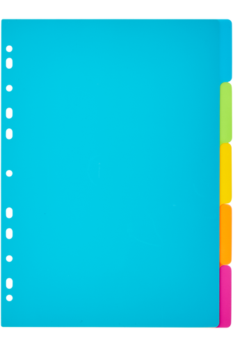 Organise your folder or binder with these colourful Whitcoulls A4 subject dividers. Including five tab dividers, each divider is suitable for use in ringbinders or lever arch files. Each sheet is made from lightweight yet strong plastic that will not tear or break easily and are waterproof so can be wiped clean.