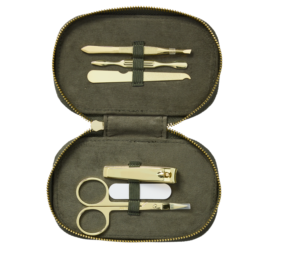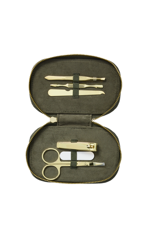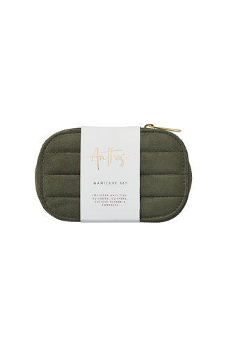 Tackle anything life throws at you with perfectly manicured nails thanks to this manicure set from the WHSmith Anthos range featuring an elegant moss green padded cover. The case houses a 5 piece set including: a nail file, pair of nail scissors, nail clippers, cuticle pusher, and tweezers.
