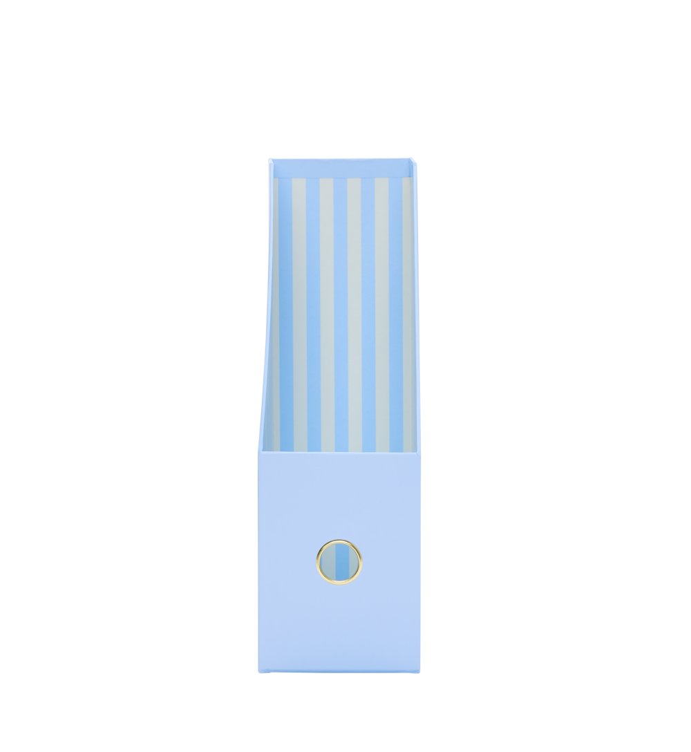 Only available in store, not available online. A blue magazine file with white stripes from WHSmith. Great for use in offices to tidy magazines or documents. Features an edged finger hole for ease of access.