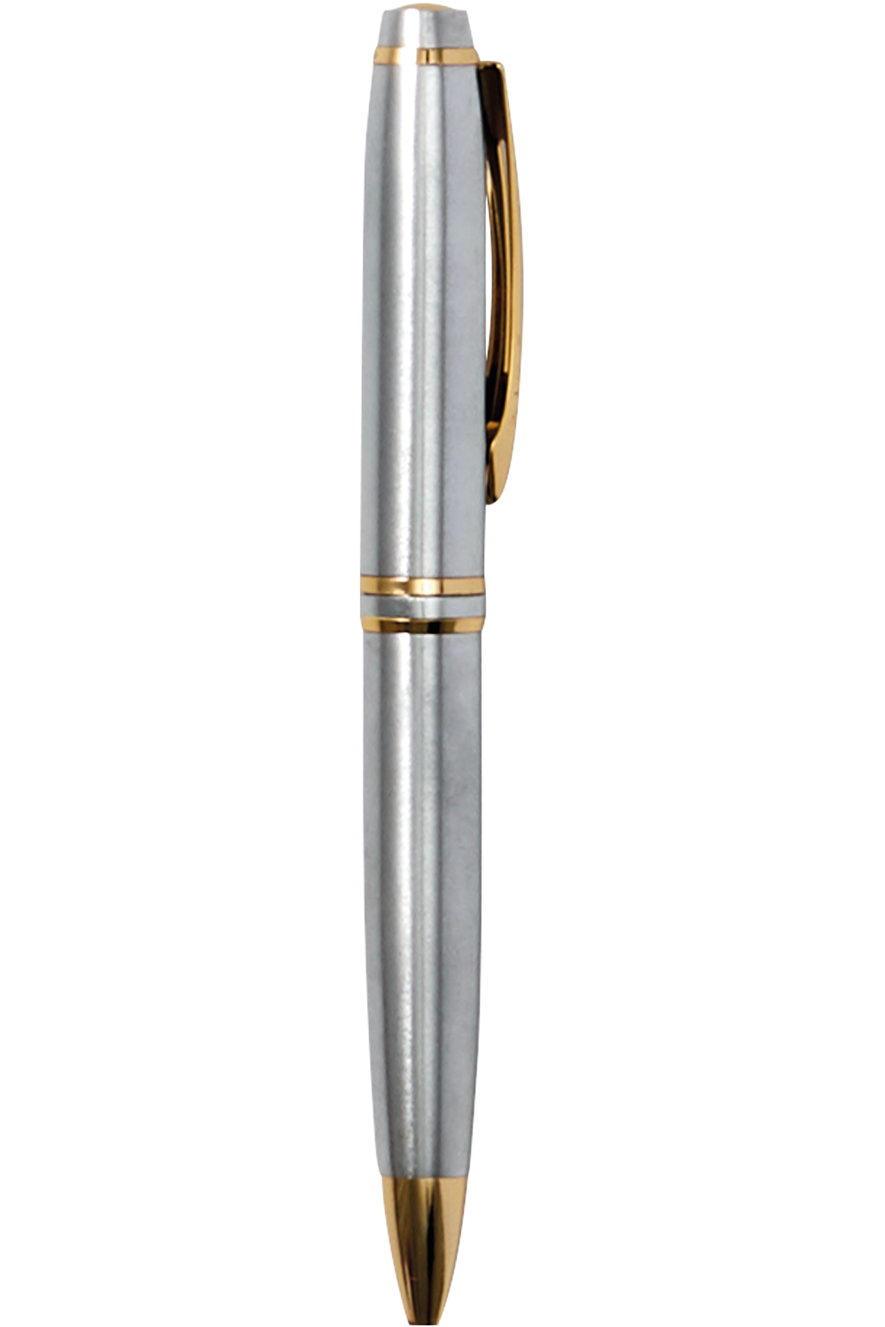 A brushed stainless steel refillable ballpoint pen from WHSmith with a gold trim. Coming with a medium nib and black ink, this ballpoint pen gives a professional feel and would make a great addition to any office