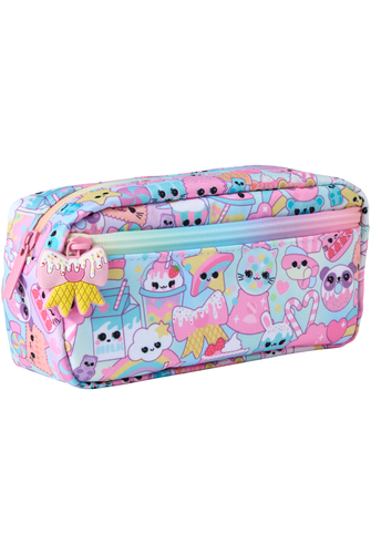 Keep all of your stationery safe and organised this absolutely adorable pencil case from the WHSmith Cafe Cute range featuring a case full of adorable desert-themed characters. This pencil case features two zip compartments each with a navy blue zip