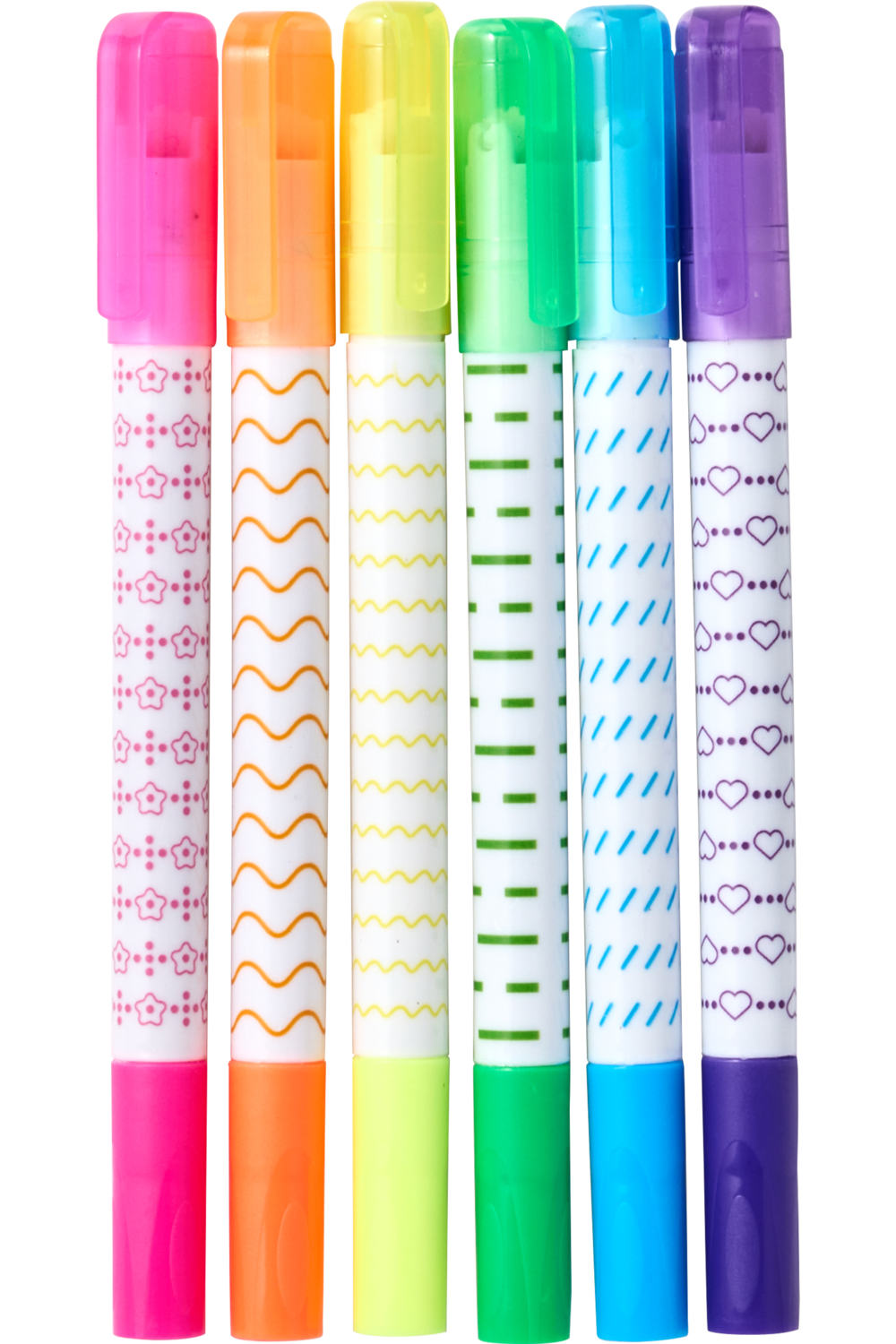 - Contents: 6 highlighter pens with roller stamps