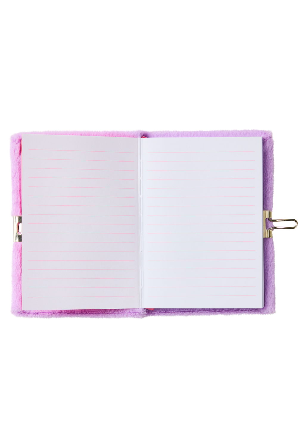 A delightful A6 hardcover notebook from the WHSmith Chasing Daisies range featuring an adorable pink flower with a yellow smiling face on a purple plush cover. This notebook features lined pages and comes with a padlock and key to keep all of your important notes and thoughts safe and secure.