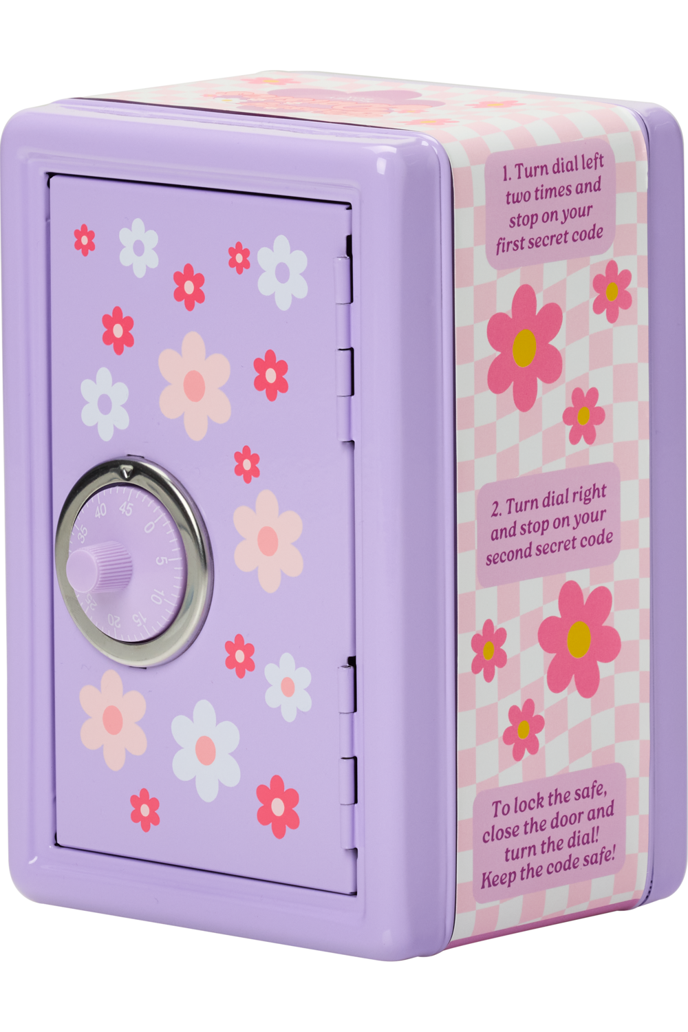 Keep your savings locked up tight with this adorable flower themed moneybox safe from the WHSmith Chasing Daisies range. Made from sturdy purple metal and covered in fun colourful daisy illustrations, this safe comes with a working combination lock to keep their valuables safe and sound.