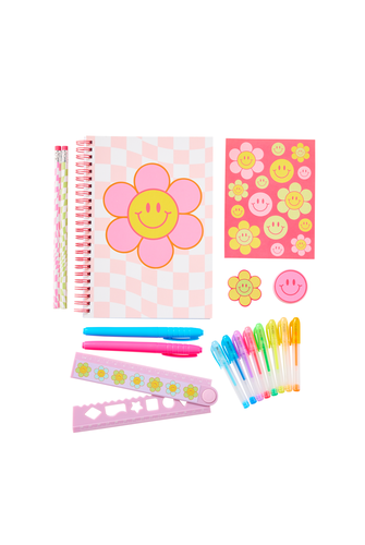 Add some fun to your pencil case with this fashion stationery set from the WHSmith Chasing Daisies range. The handy plastic zip pouch contains an assortment of adorable stationery including: a smiling flower notebook, two pencils, 8 coloured pens, 2 highlighters, a ruler, and an eraser.- Exclusive to Whitcoulls