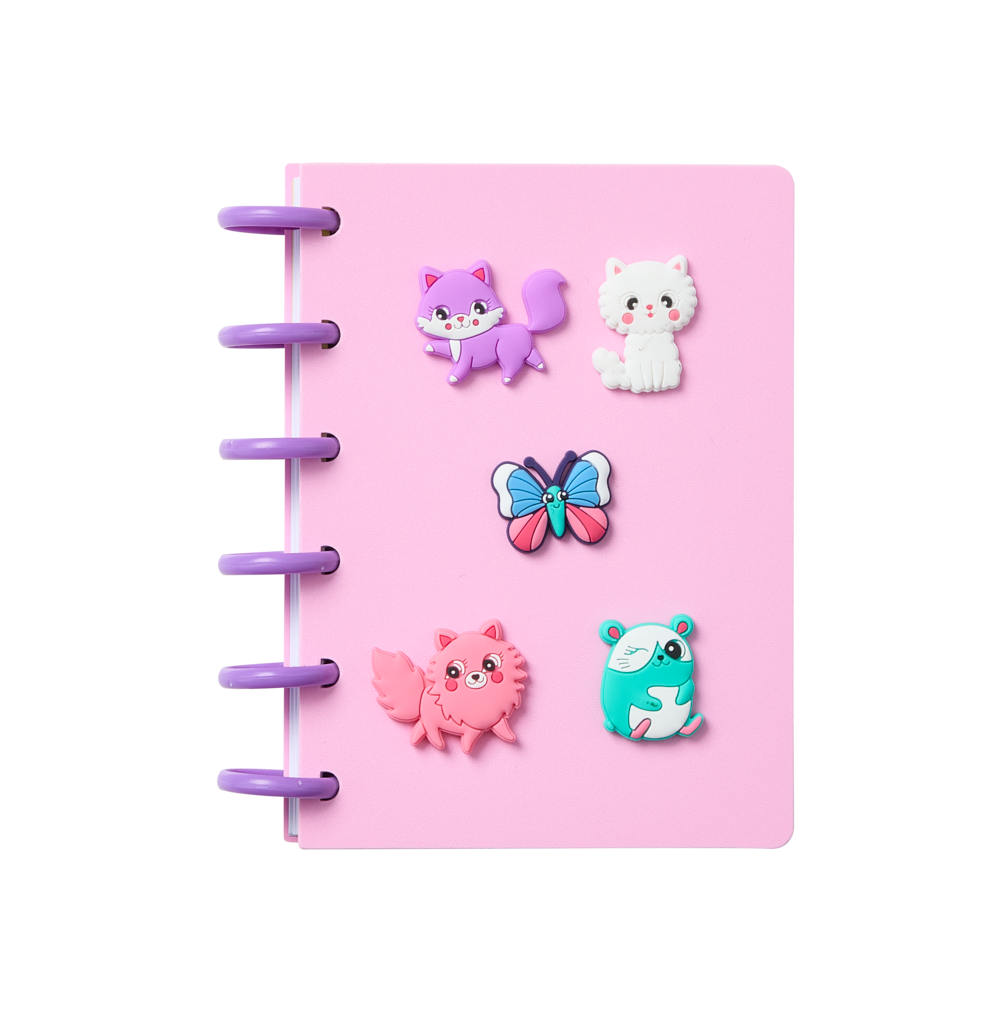 A delightful A5 stiff-cover notebook from the WHSmith Cutie Paws range featuring adorable five colourful silicon animal charms on a pink cover. This notebook features lined pages and is perfect for home, school, or on the go.