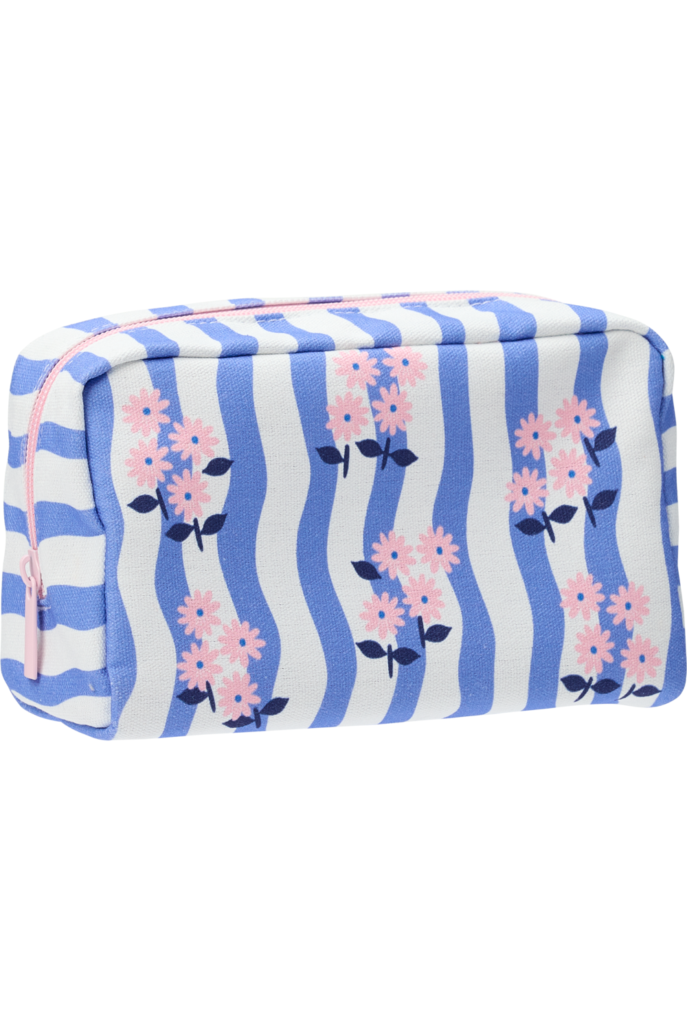 Keep all of your stationery safe and organised with this chunky pencil case from the WHSmith Dizzy Bloom range featuring pink floral illustrations on a striped blue and white case. This pencil case features one zip compartment and a pink zip.