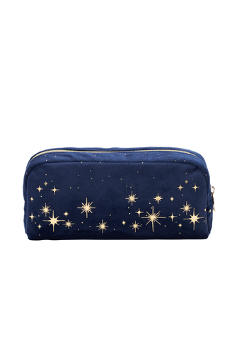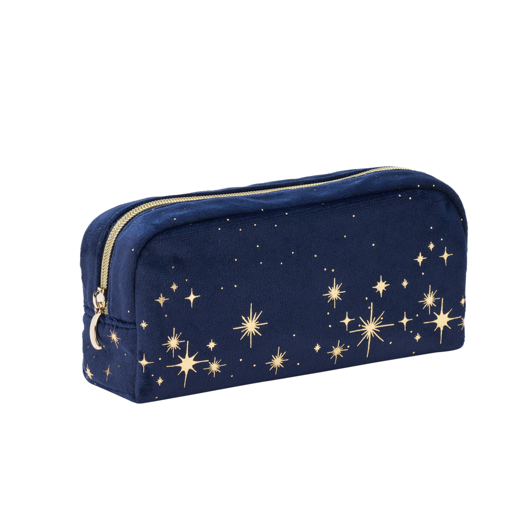Keep all of your stationery safe and organised with this magical chunky pencil case from the WHSmith Folkstory range featuring a gorgeous gold foil star design on a midnight blue velvet case. This pencil case features one zip compartment and a gold zip.