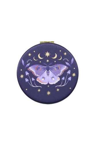Fashionable and functional, this compact mirror from the WHSmith Folkstory range is exactly what you need to keep make up perfect throughout your busy days. The compact features a magical midnight blue cover with a moth and mushroom design, and is double sided to feature 2 polished mirrors: one true with the other having a larger magnification.
