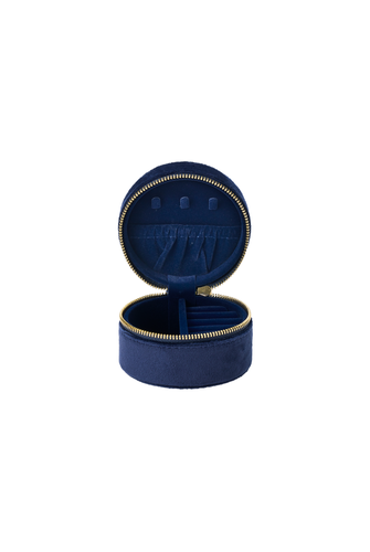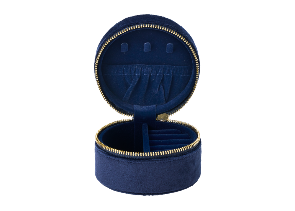 An elegant and compact midnight blue jewellery case from the WHSmith Folkstory range, this case is perfect for travel or everyday use. The jewellery case features an elegant midnight blue fabric with a gold foil moth on the top, and closes with a gold zip. It features an elastic wall pocket, ring rolls, and a small compartment to hold your precious items in place. This case would make a perfect gift for someone special in your life, or just for yourself.