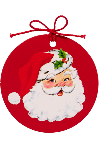 Add a festive finish to your Christmas gifts and personalise them with these round red gift tags which feature a traditional Santa face with rosy cheeks. Pack of six tags each with a red thread attached.