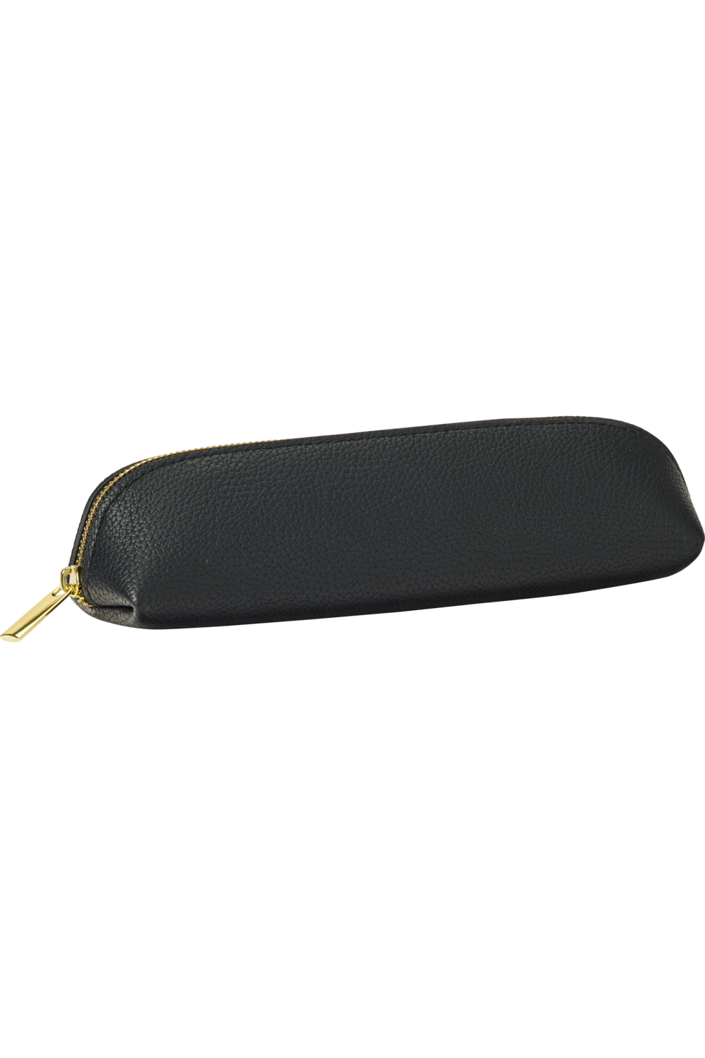 Keep your pens and pencils together with this slim pencil case from the WHSmith Luxe range featuring a black leather-like case. This pencil case features a triangle compartment with a gold zip.