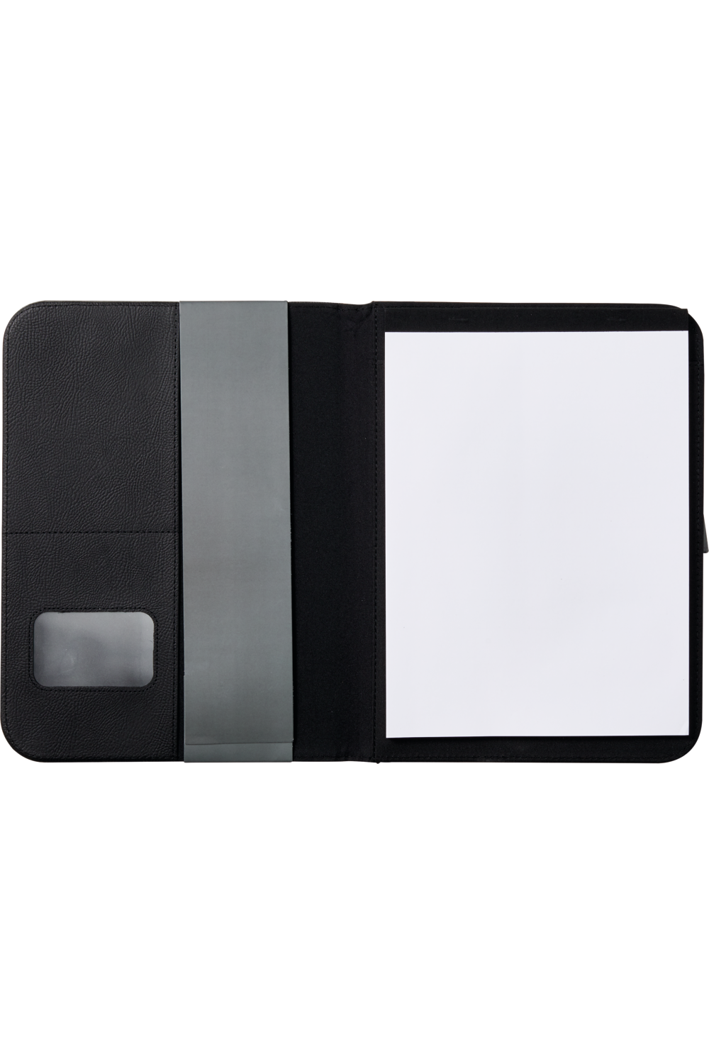 This stylish two-tone black and grey A4 PU folio is perfect for personal or business use and is complete with a magnetic buckle closure. The professional appearance of the folio makes it ideal for use in meetings while the larger A4 format offers plenty of space for your essentials and more. Inside the folio contains a top-bound wide ruled A4 pad, 4 credit card slots, 1 elastic pen holder and 1 tablet compartment which is capable of containing a tablet with dimensions up to 240mm by 170mm