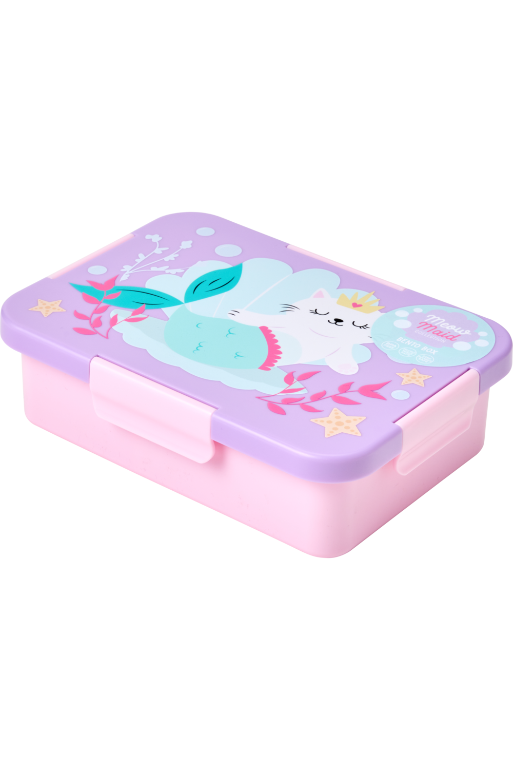 Keep your lunch nice and fresh wherever you go with this purr-fect bento lunch box from the WHSmith Meowmaid range, featuring a Meowmaid relaxing on a shell underwater on a purple lid. The lunch box features two small and one medium sized compartments, and the lid features a silicon rim around the compartments to create a tight seal.