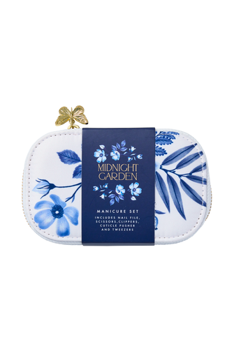 Tackle anything life throws at you with perfectly manicured nails thanks to this manicure set from the WHSmith Midnight Garden range featuring a beautiful painted blue floral design on a white cover. The case houses a 5 piece set including: a nail file, pair of nail scissors, nail clippers, cuticle pusher, and tweezers.