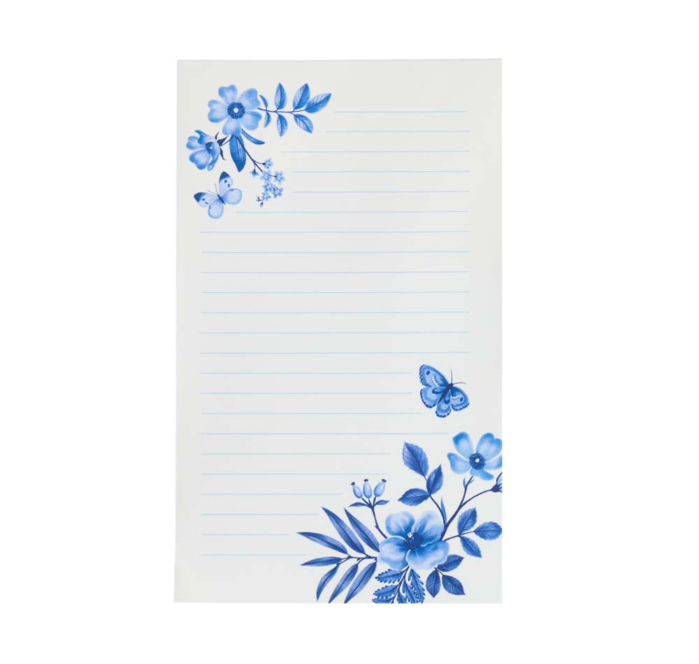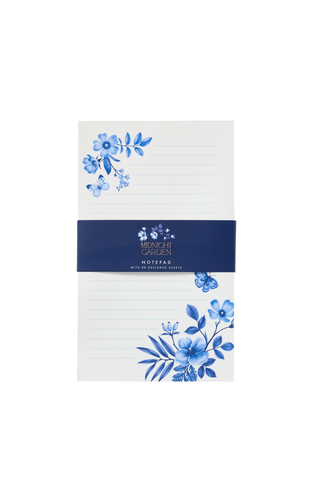 This notepad from the Whsmith Midnight Garden is perfect for jotting down notes or keeping track of your jobs and chores. This pad features 80 perforated sheets with gorgeous blue floral and butterfly illustrations. This note pad is perfect for when you're at home, the office, or on the go.