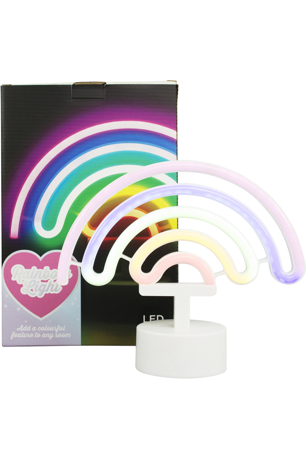 Add a colourful feature to any room with this WHSmith LED Rainbow Neon Light! This rainbow neon light uses low-voltage energy-saving lamps to provide just the right light output for room decoration, place it on your mantel or on your table for the ideal eye catching addition to your party table.