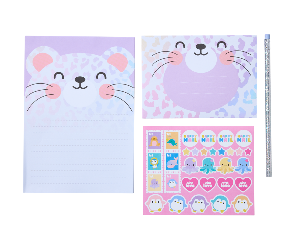 - Contents: 5 envelopes, 10 paper sheets, 1 sheet of stickers, 1 pencil