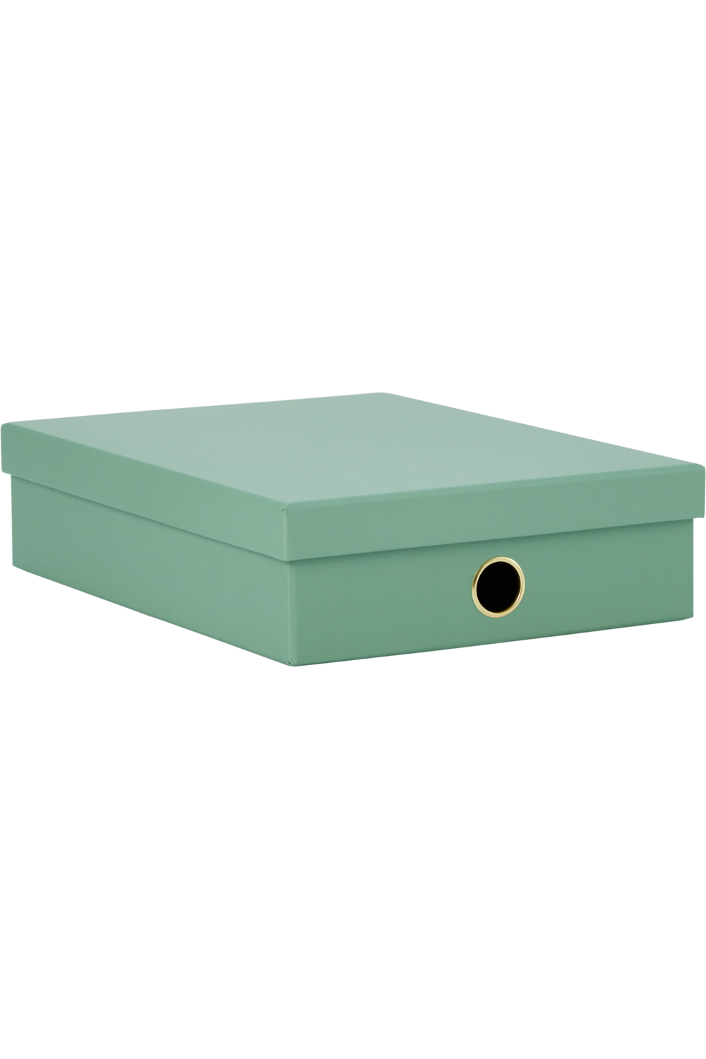 A sage green document box from WHSmith, perfect for use in offices to tidy magazines or documents. Features a lift-off lid and a finger hole that's edged with metal for ease of pulling it out from your shelf. Perfect for storing magazines, notebooks, and other loose documents.