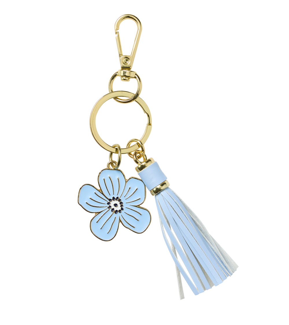 Add a little bit of flair to your pencil cases, bags or keys with this elegant keyring from the WHSmith Strawberry Bloom range. Featuring a pastel blue tassel and flower charm.