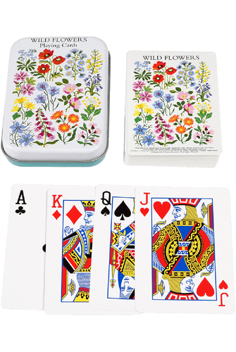 A standard set of 52 playing cards plus 2 jokers, all neatly enclosed in a stylish metal tin. Both the lid and reverse of the cards feature Wild Flowers prints for a luxuriously stylish look.- Not suitable for children under 3 years