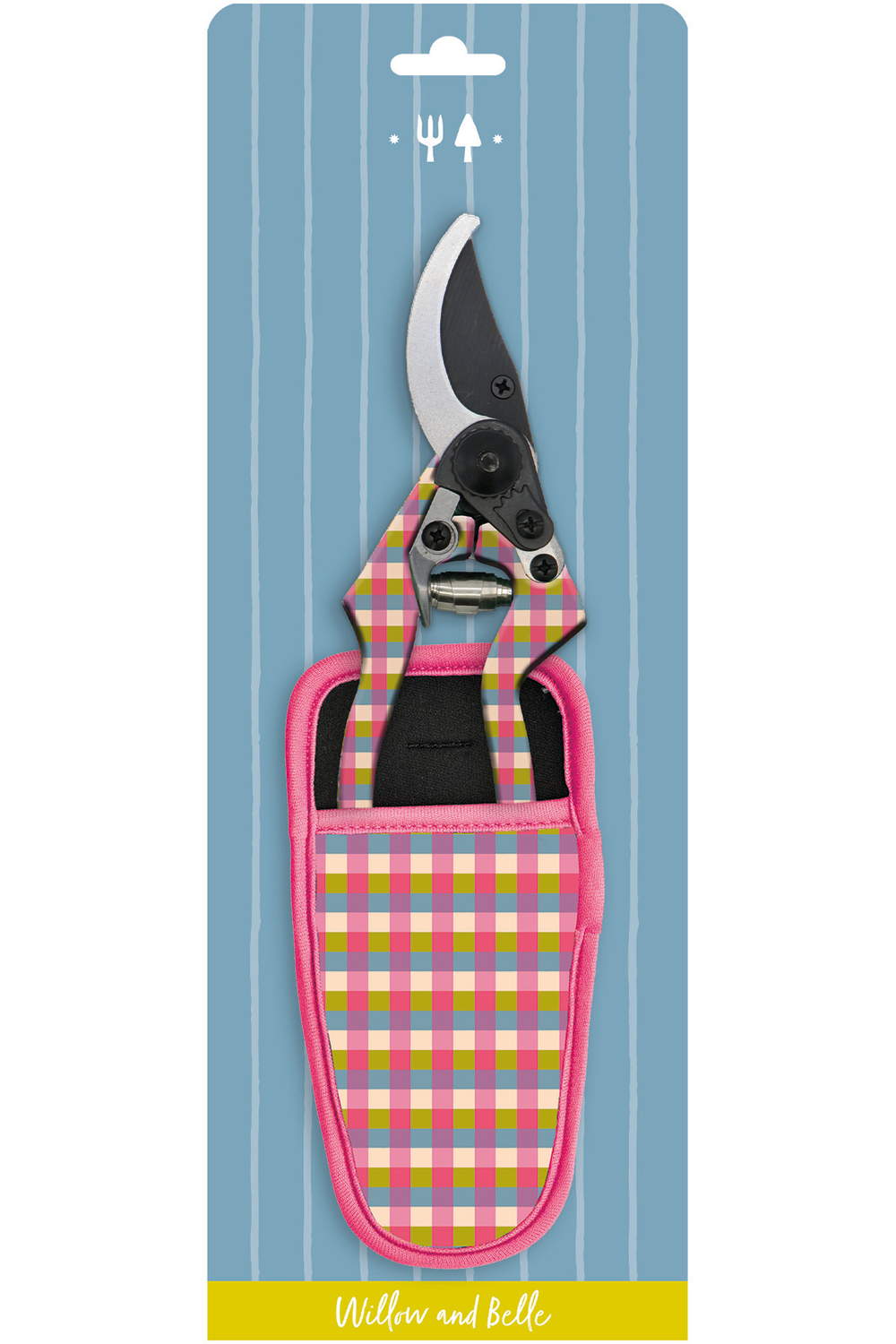 Willow & Belle Gardening Secateurs With Pouch Gingham Pink