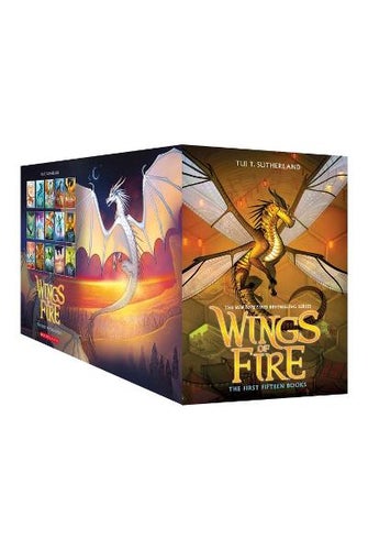 An epic collection of the first fifteen adventures of the series Wings of Fire! Titles include: The Dragonet Prophecy, The Lost Heir, The Hidden Kingdom, The Dark Secret, The Brightest Night, Moon Rising, Winter Turning, Escaping Peril, Talons of Power, Darkness of Dragons, The Lost Continent, Hive Queen, Poison Jungle, Dangerous Gift and Flames of Hope.